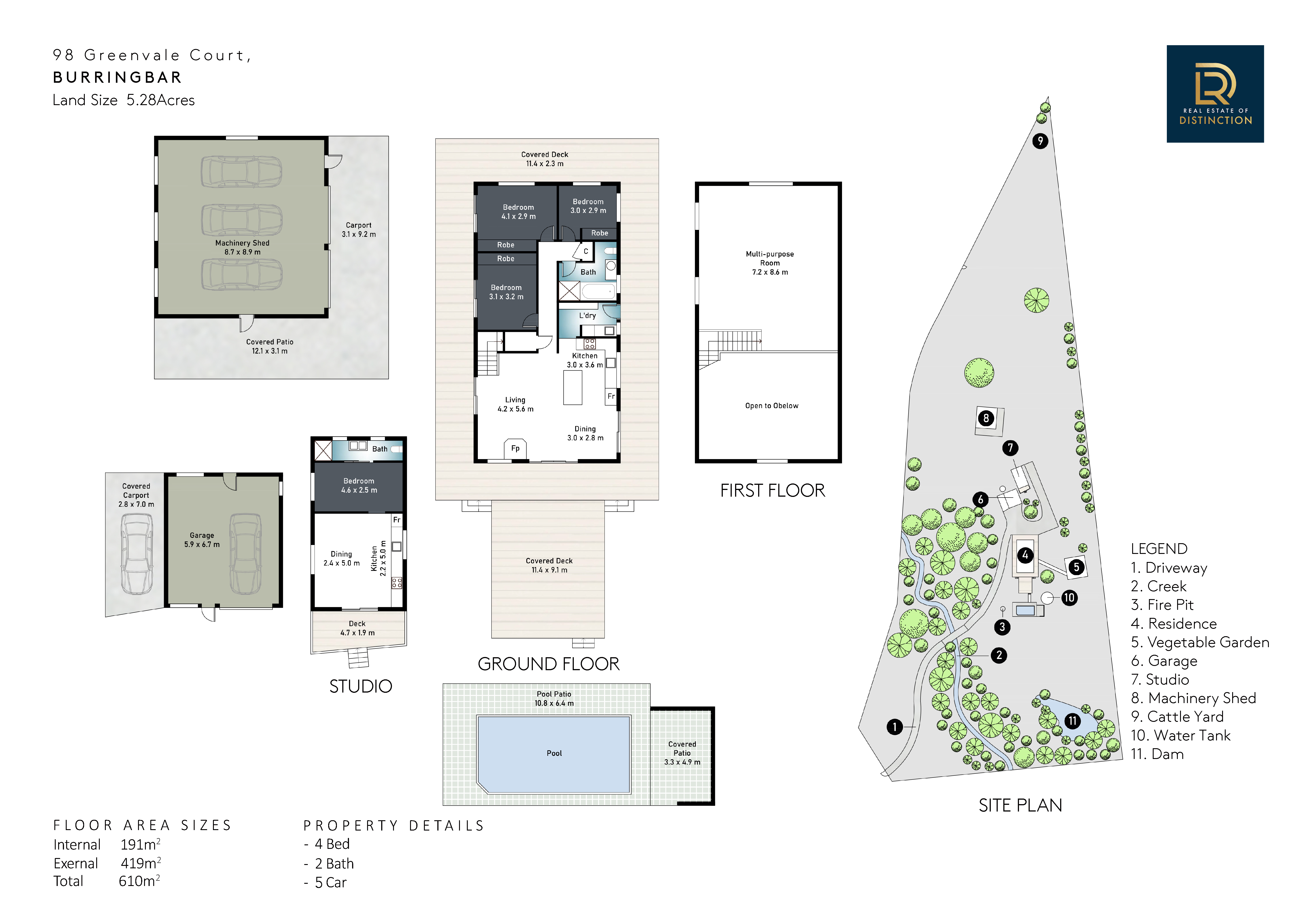 • Water security from freshwater creek, dam, well and multiple large rainwater tanks (1x 45,000L, 2 x 9000L and 1 x 6000L approximately)
